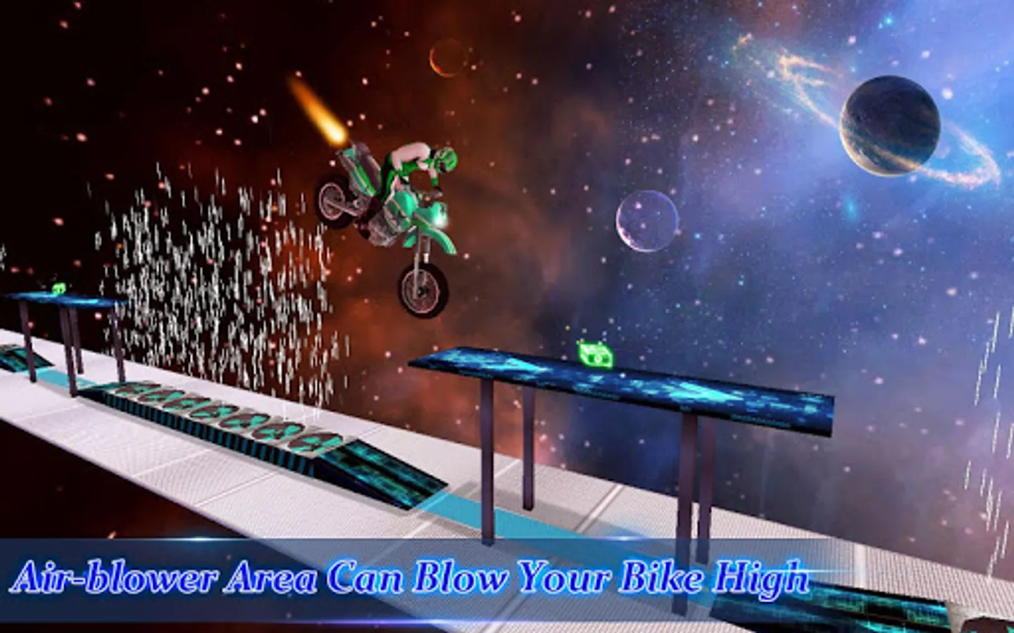 NOTE: Stunt Bike Racing 3D Galaxy Tricks Master is a free bike game and supported by Ad.