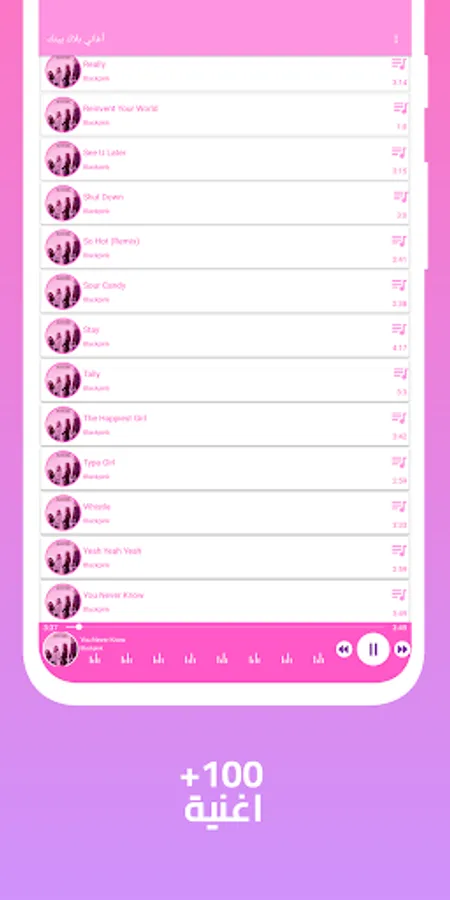 تطبيق يحتوى على جميع أغاني بلاك بينك الجديدة والقديمة بدون انترنت