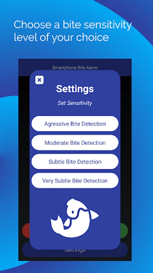 - Change the bite sensitivity by clicking on settings and clicking the sensitivity mode of your choice. The default setting is at moderate bite detection