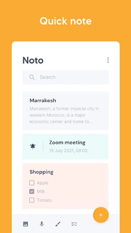 Noto Notepad is a simple notepad with a cool interface design, it gives you a quick and easy note-taking experience when you write notes, messages, emails, to-do, and shopping lists.