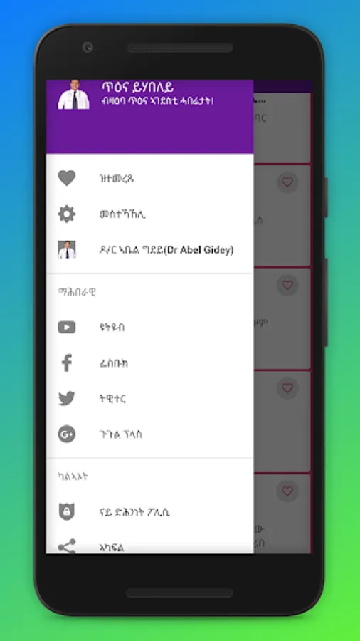 ዶ/ር ኣቤል ግደይ ኸበዶም ኣብዚ ሕዚ እዋን ኣብ ምፍላጥ ጥዕና ዝነጥፍ ሓኪም እዩ። ኣብ ሕክምና፥ምርምር ጥዕና፥ ነፃ ሕክምና ን ዝተፈላለዩ ግብረሰናይ ድርጅታት ኣብ ምሃብን ብፌስቡክ ጥዕና ይሃበለይ ብዝብል ገፅ ንሰብ ኣብ ምምሃር ኣብ ምንጣፍ ይርከብ። ቐዳማይ ዲግሪ ብሕክምና ካልኣይ ዲግሪ ስፔሻሊስት ሕክምና ህፃናትን ኣባፅሕን ኮይኑ ኣብ ዓይደር መቐለ ዩኒቨርሲቲ ብሓጋዚ ፕሮፌሰር ኮይኑ ኣብ ምስራሕ ይርከብ። ልዕሊ 50 ሰርትፊኬታት ምስጋናን ስልጠናታትን እውን ወሲዱ እዩ።