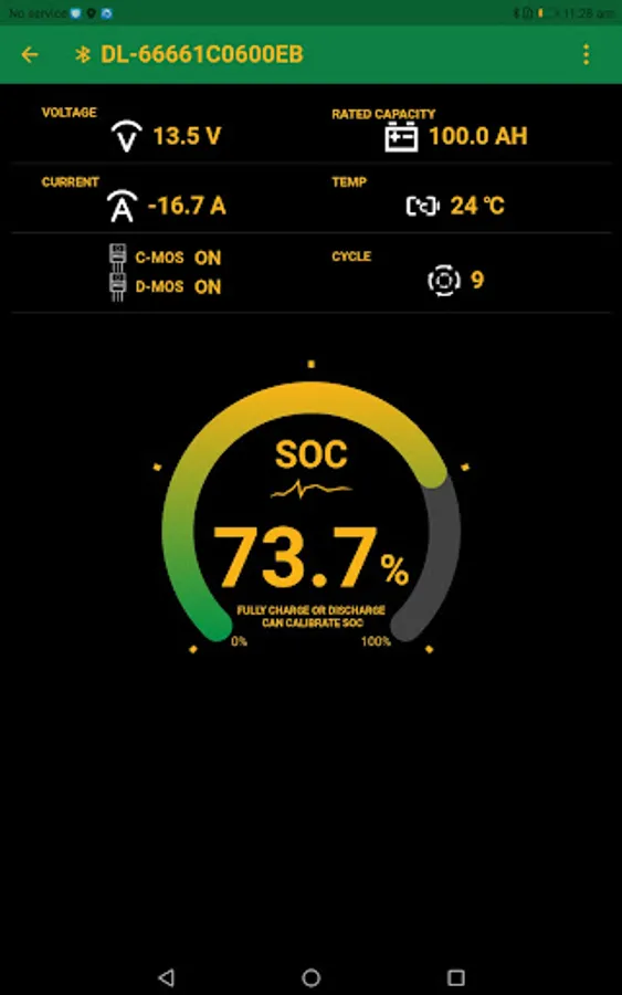 Voltage, rated capacity, current, battery temperature, charge and discharge state, number of cycles, calibration SOC.
