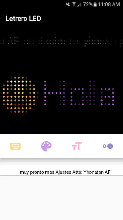 It allows you to type in a message, select the speed, color, text size and scroll the text sideways.