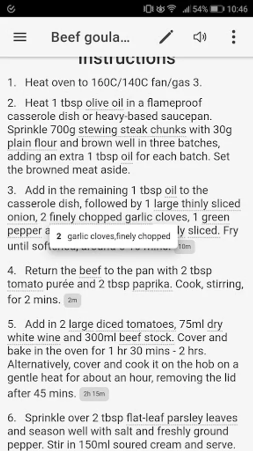 • Hands free mode dicates the recipe while you cook, hover your hand over the phone to proceed to next step