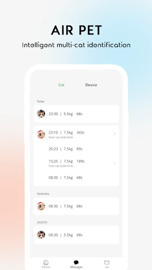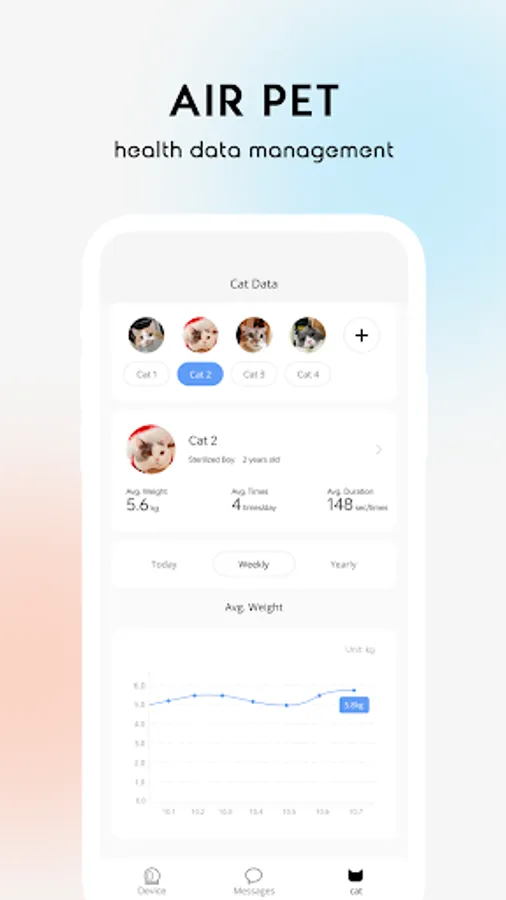 【Health Management】According to the different weight of cats, you can distinguish and record the cat's toilet data, and easily understand the cat's toilet health.