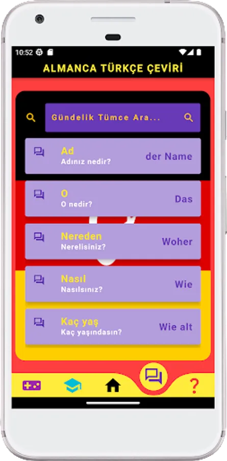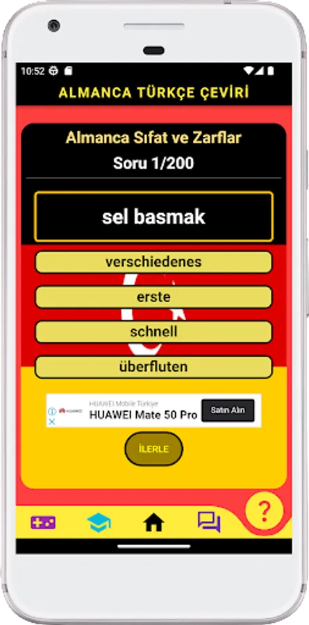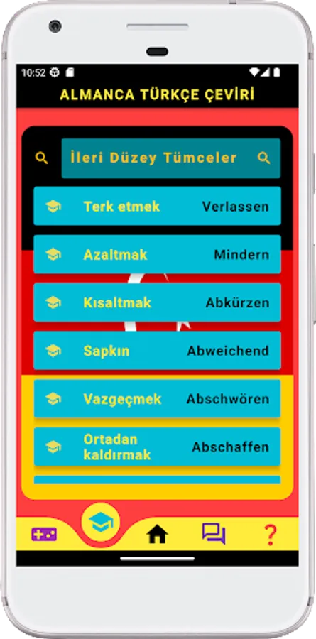 Thanks to our application, you can see Turkish and German words mutually and you can memorize words. This application will help you a lot while studying for international language exams such as Goethe Institute or exams such as Yökdil, YDS, YDT taken in Turkey. With the Hangman game, which is a German word puzzle game, you will learn by having fun by finding its Turkish translation using German clues. You can also improve your vocabulary by using 200 German adjective and adverb tests. Easily memorize Deutsch/German verbs, adjectives, adverbs, nouns, pronouns. In particular, you can translate words or sentences from Turkish to German and from German to Turkish. Practice fast with hundreds of everyday and academic German-Turkish sentences. Learn verbs, adjectives, adverbs, nouns, pronouns in a short time.