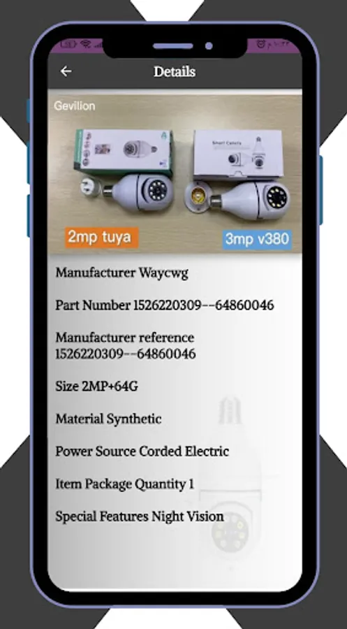YIIOT Light Bulb Camera The application gives you specifications and images for a camera