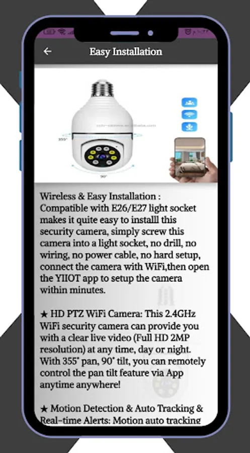 Welcome to the application of the wireless security system setup and operation guide from YIIOT Light Bulb Camera, where you can easily see all the specifications and advantages of YIIOT Light Bulb Camera through the application