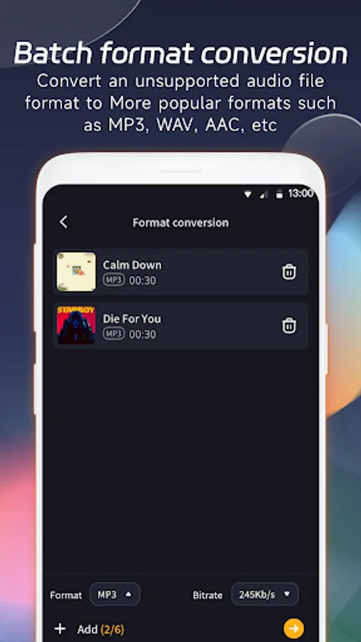 Mix Audio of two or more songs to create remixes. Same or any format songs can be remixed.