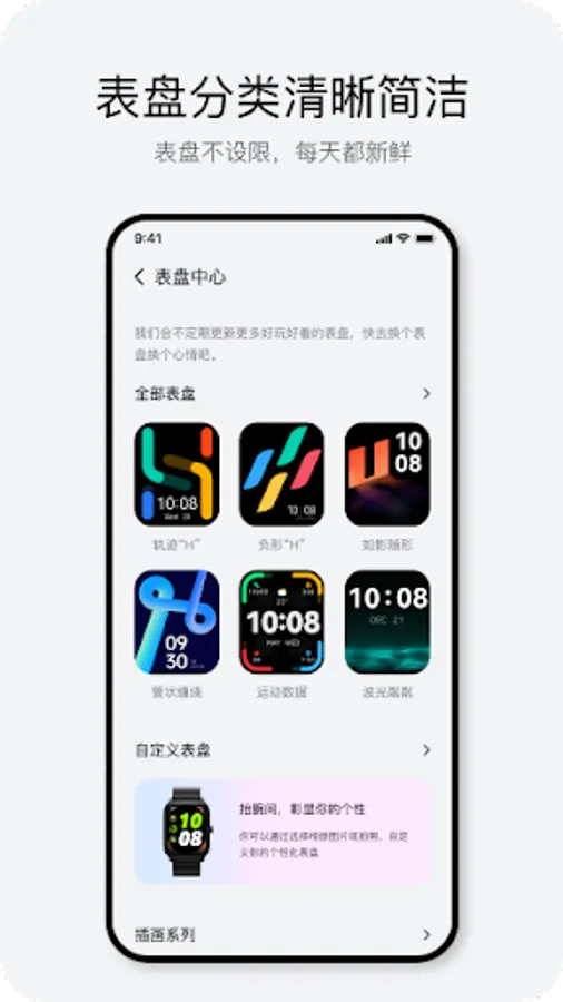 There are a large number of watch faces to choose from. You can choose your favorite watch face to synchronize with the watch according to your mood, and you can set your favorite picture as your own watch face.