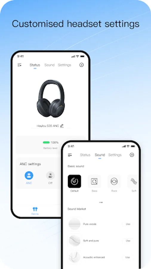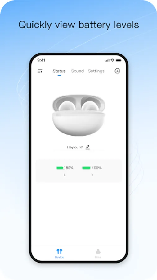 Use Haylou Sound to quickly check the power level of your headset, set different sound effects for your headset, modify headset button settings, and upgrade your headset firmware version.