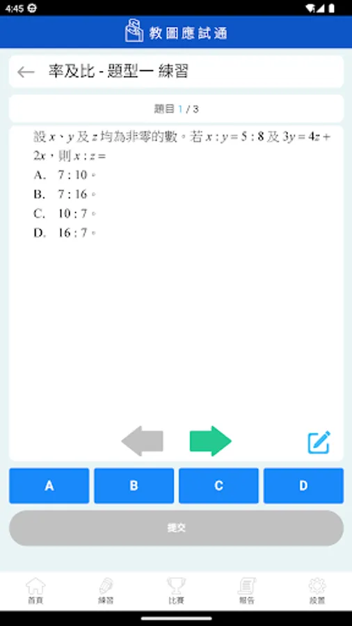 The teaching picture test can be used through HKEP Examplus, which can support tablet computers and mobile phones. Designed in conjunction with DSE Mathematics (compulsory part) Paper 2, it provides strategic special training, aiming at "Pass", "Sit 3, Look 4", and "Sit 5+", daily tests, continue to maintain the level of answers, and stabilize Seek a breakthrough.