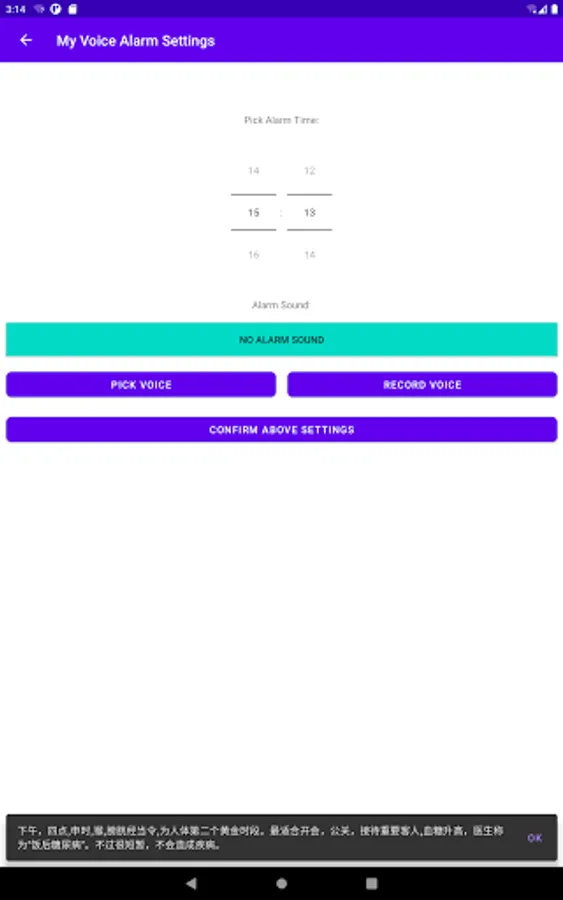 alarm multi-dialect Languages, the point of your timekeeping, alert the user health info.
