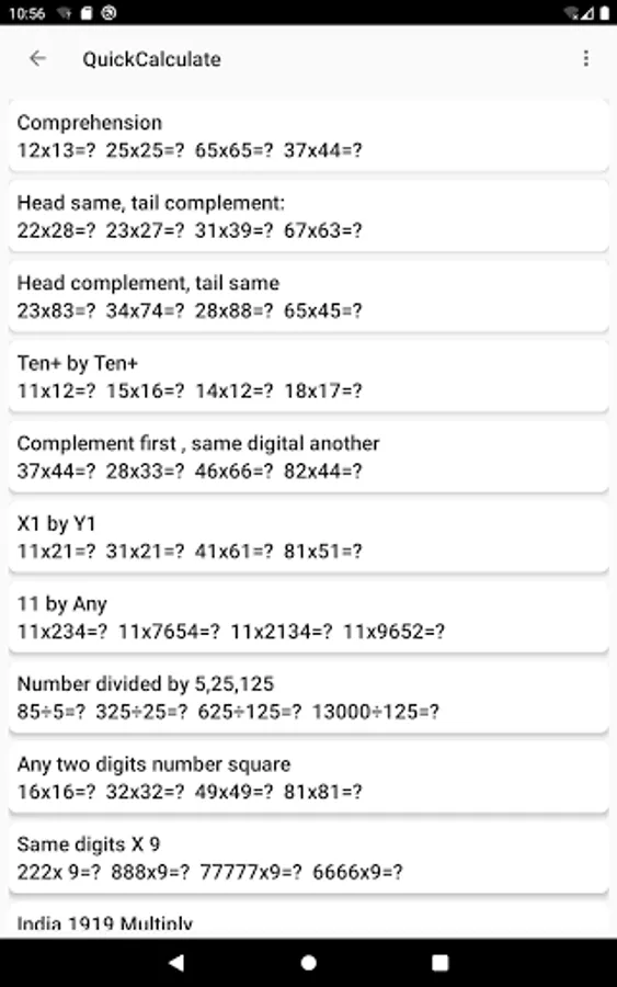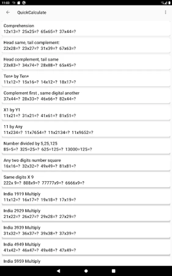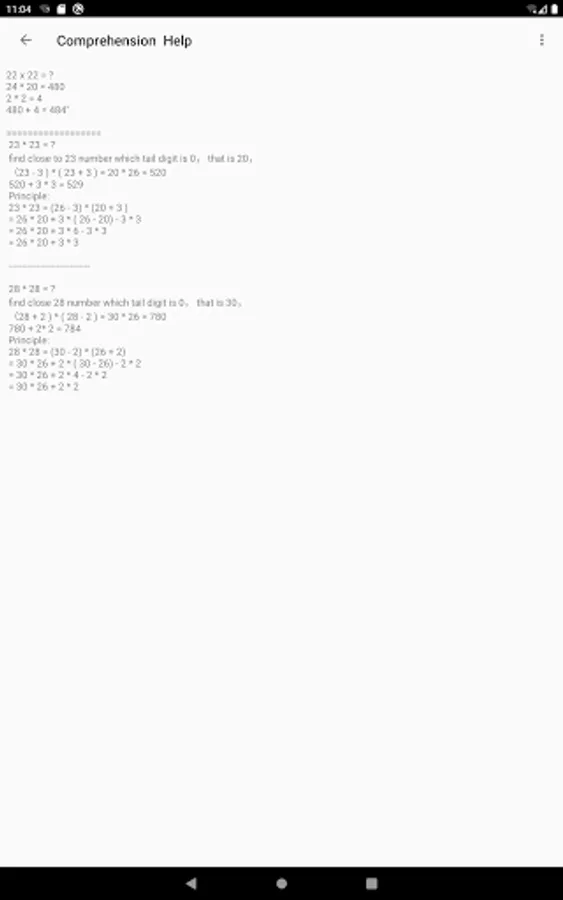 Collect frequently used quick calculation techniques and generate corresponding questions. Students can practice and look at the help to understand the quick calculation process.