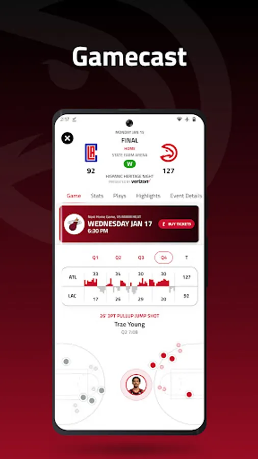 - Hawks version of live gamecast. Get real time shot charts, statistics, and a game flow to see what team has been in control at any given time.
