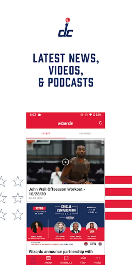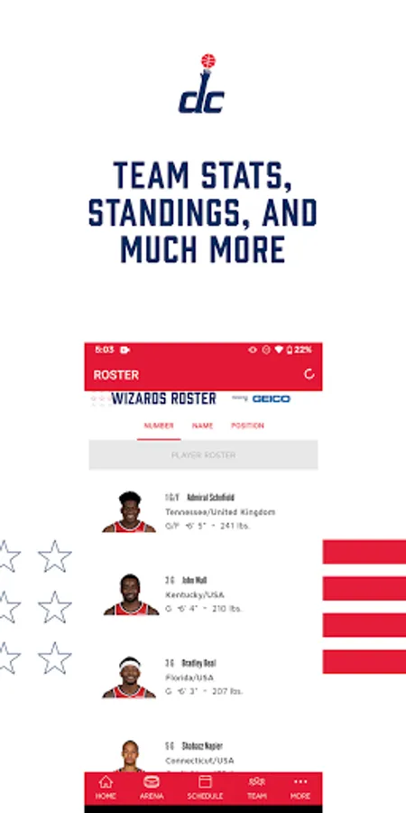 This is the official mobile app of the Washington Wizards. Make your Android device a unique part of your game-day experience for Wizards games. Want to catch breaking news of the team? See real-time statistics for every game? Watch video-on-demand clips of press conferences and player interviews? Follow post-game blogs and pre-game previews of the matchups?