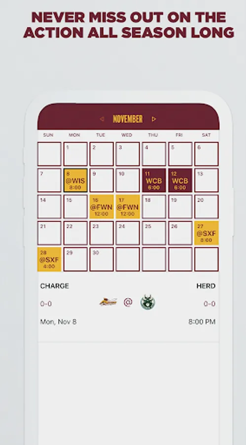 • View recent, current and upcoming game on the interactive team calendar.