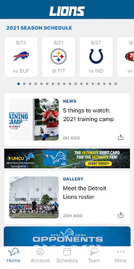 Evolving home-screen: Pre-game, in-game, post-game, off-season countdown, draft-day