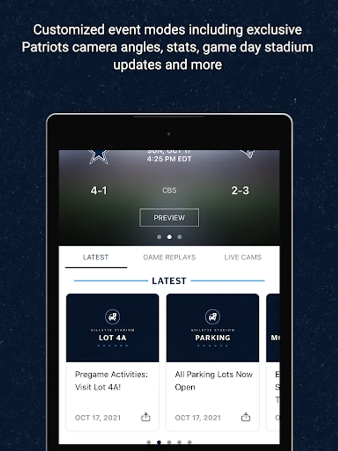 *Giveaways available on the Gillette Stadium Wi-Fi network only.