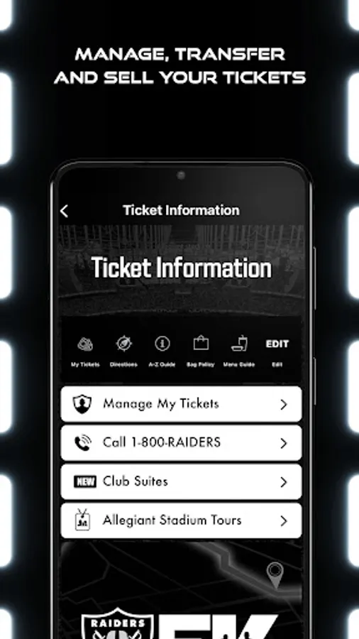 This app gives Raider Nation instant access to game and player information, team content and highlights. It is your best resource for Allegiant Stadium event planning and stadium utility features.