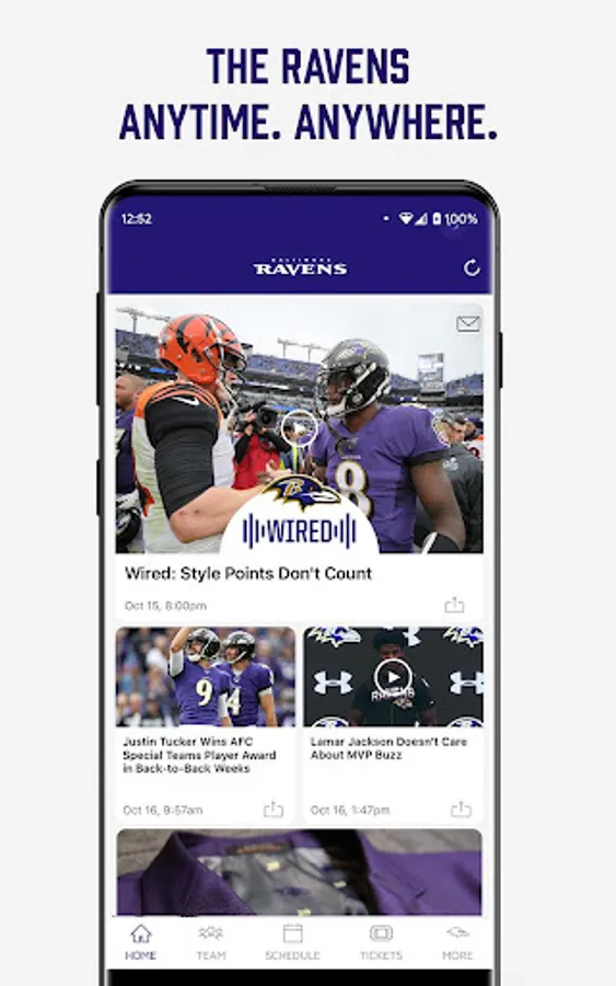 The official team app of the Baltimore Ravens, providing 24/7/365 coverage of all things Ravens. We keep the Flock connected to the team with our insider video, news, photo and audio content. Create a user account to access exclusive features. Turn on Push Notifications and automatic app updates so you don’t miss the latest breaking news and team updates. And enable Location Services for exclusive live video, in-stadium features and enhance your M&T Bank Stadium experience.