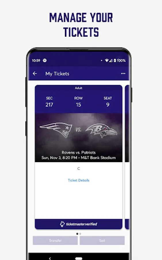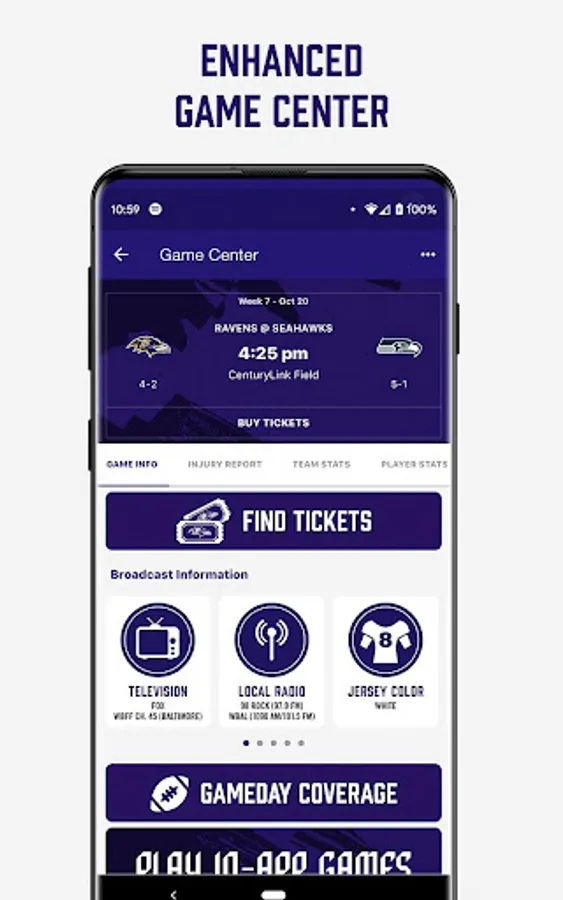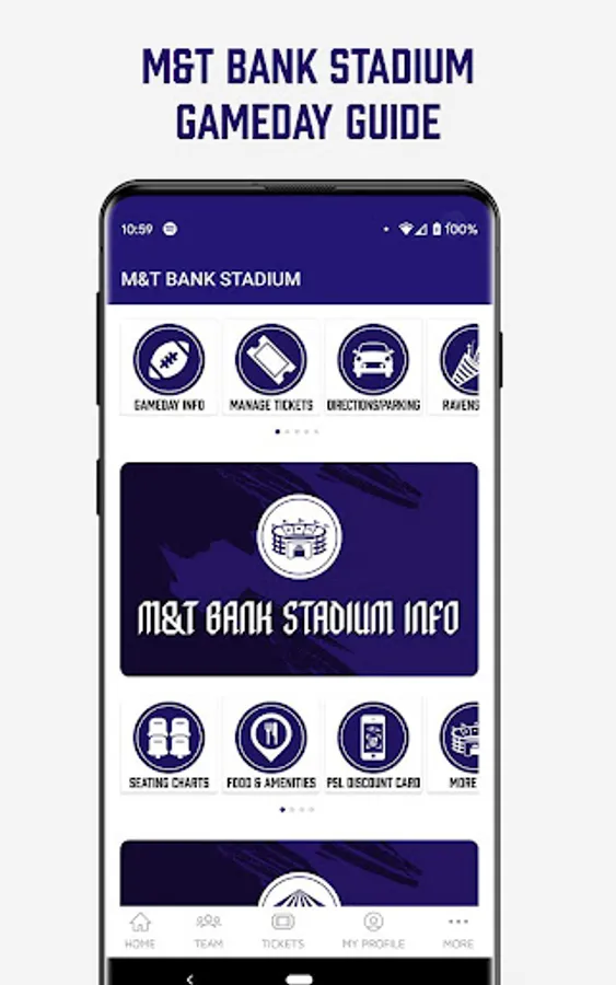 • Maps & Info: 3D seating charts, interactive stadium map with concession stands and amenities, RavensWalk