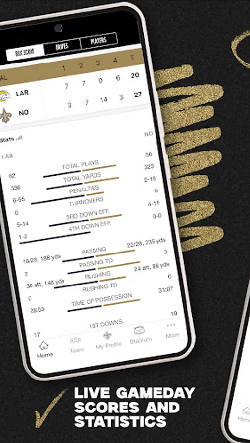This is the official mobile app of the New Orleans Saints. Make your Android device a unique part of your game-day experience for Saints games. Want to catch breaking news of the team? See real-time statistics for every drive? Watch video-on-demand clips of press conferences and player interviews? Follow post-game blogs and pre-game previews of the matchups?