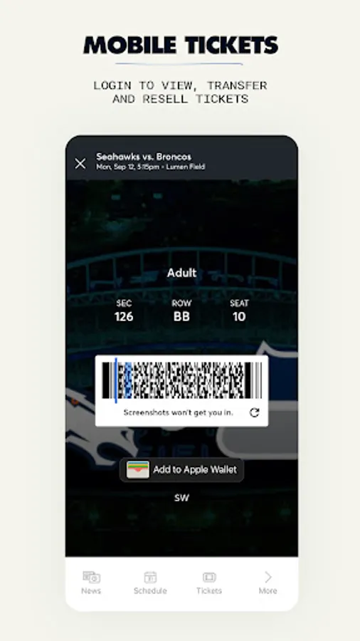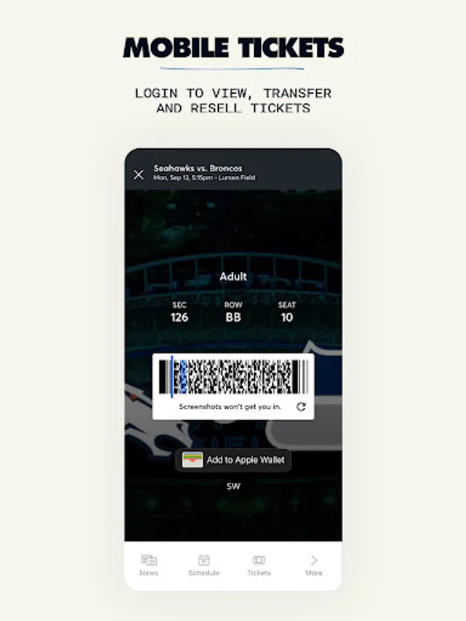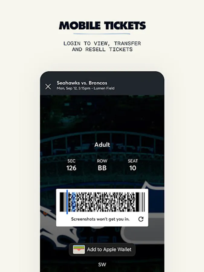 Mobile Ticketing: Use your Seahawks app to view, transfer and sell your Seahawks tickets.