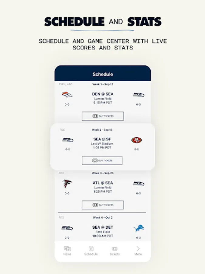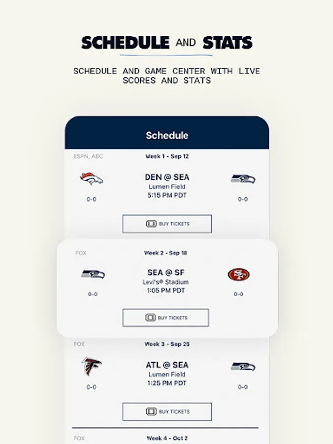 This is the official Seattle Seahawks Mobile App. Use your iPhone or iPad to stay connected with the team all year long. Team news, mobile tickets, in-stadium features, real-time statistics, video highlights, and more are available just a few taps away. Features include: