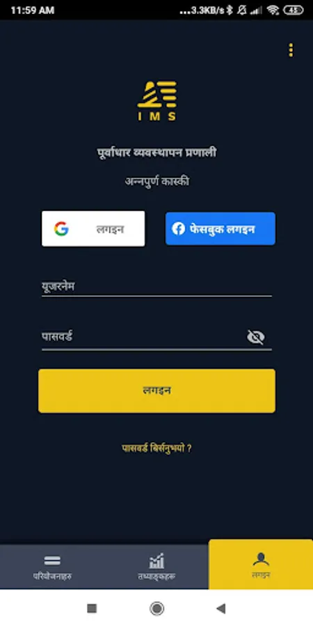 IMS-AnnapurnaKaski is an application for real-time citizen feedback on the transparency, participation and effectiveness of infrastructure projects. From now onward, citizens would have a feedback system developed in their mobile phone to supply feedback based on evidence.