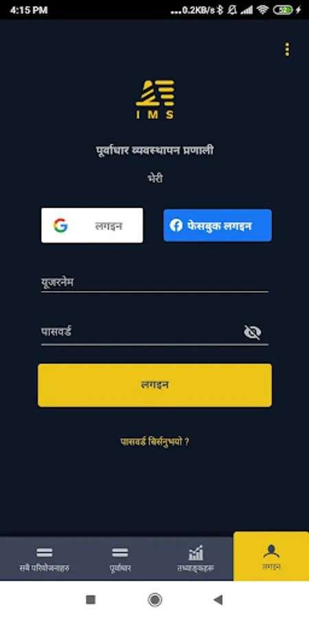 IMS - Bheri is an application for real-time citizen feedback on the transparency, participation and effectiveness of infrastructure projects. From now onward, citizens would have a feedback system developed in their mobile phone to supply feedback based on evidence.