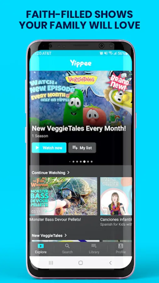 To access all features and content you can subscribe to Yippee: Watch new VeggieTales! on a monthly or yearly basis with an auto-renewing subscription right inside the app.* Pricing can vary by region and will be confirmed before purchase in the app. In app subscriptions will automatically renew at the end of their cycle.