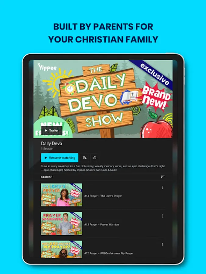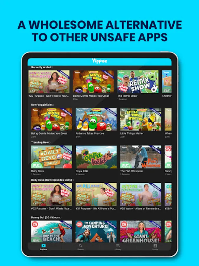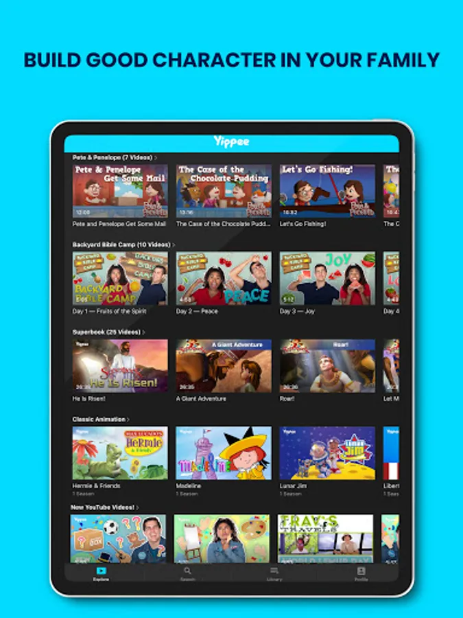 Rest a little easier, knowing you found an app for your family that you can actually get behind. Yippee is not just another streaming service. We are changing lives with TV shows and equipping you, parents, with tips and tools you need to develop character in your family and grow faith in your household.