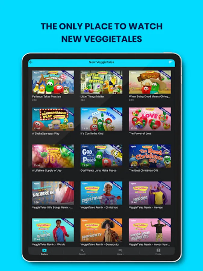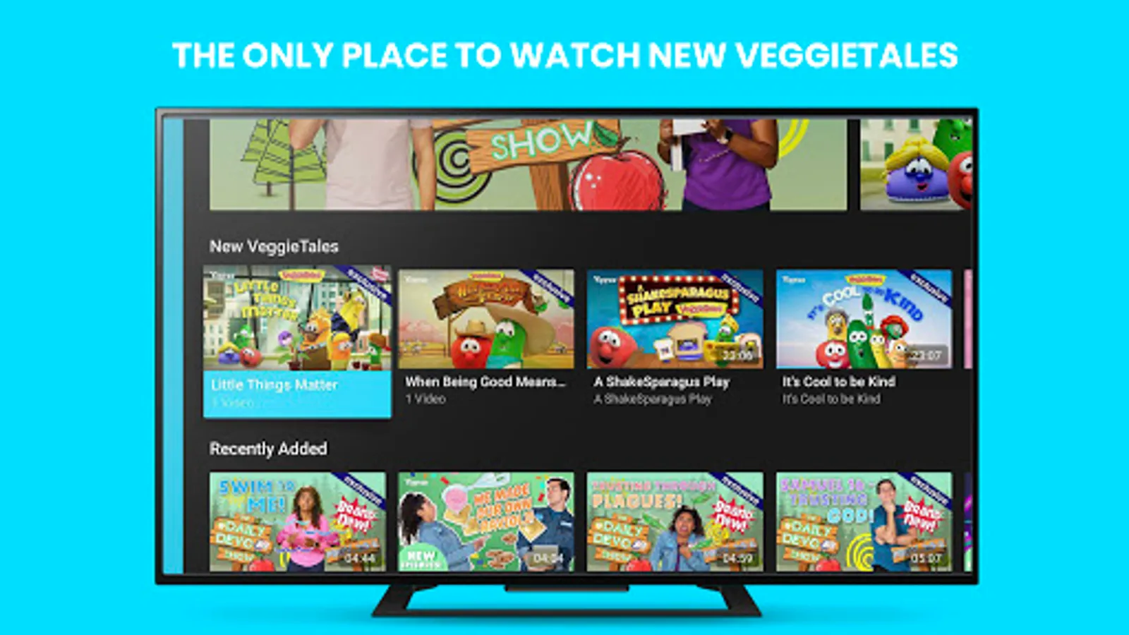 A safe place for your family to watch new VeggieTales plus 1,000s of hours of FAITH FILLED shows where characters are role models and your family will want to watch it again (and again!)