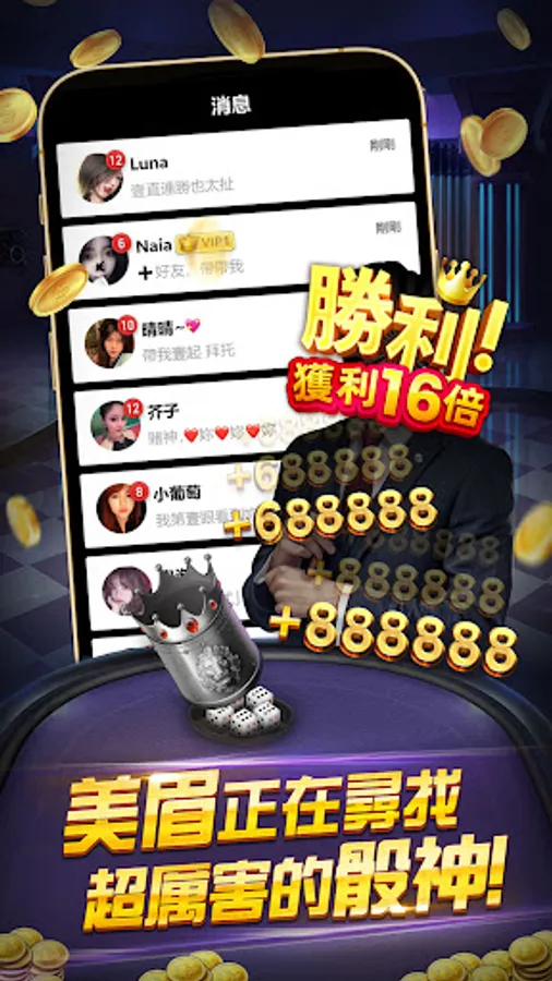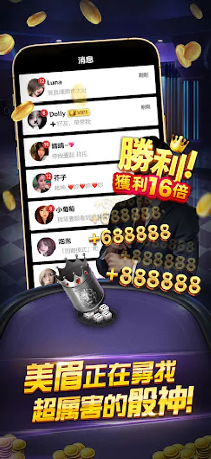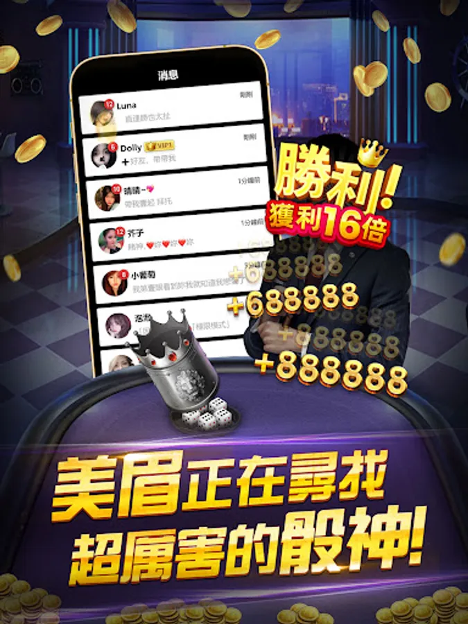 The most powerful nightclub dice game, with beautiful and handsome guys playing together online, shouting your Ma Ji and having a great time together.