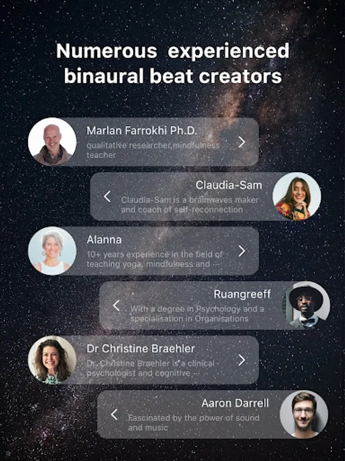 Binaural beats has been dedicated to everyone who's under stress, who's in need of a friend to bring some joy and entertainment for him/her. Binaural beats Team provides you all with music that can impact you in a positive way as we believe binaural beats music is the best stress relieving and healing vibes that can change lives.