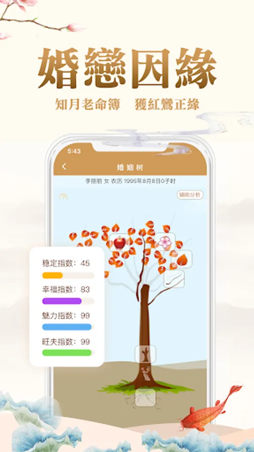 【婚姻树】剖析你一生的婚恋姻缘,助你找到如意眷侣,解脱单身,斩断烂桃花。