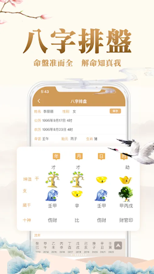 【八字排盘】生辰八字排盘,详细地分析批断你的性格特征、五行喜用神忌神等一生运势特点,并为你提供详细的开运方法,助你人生一帆风顺!