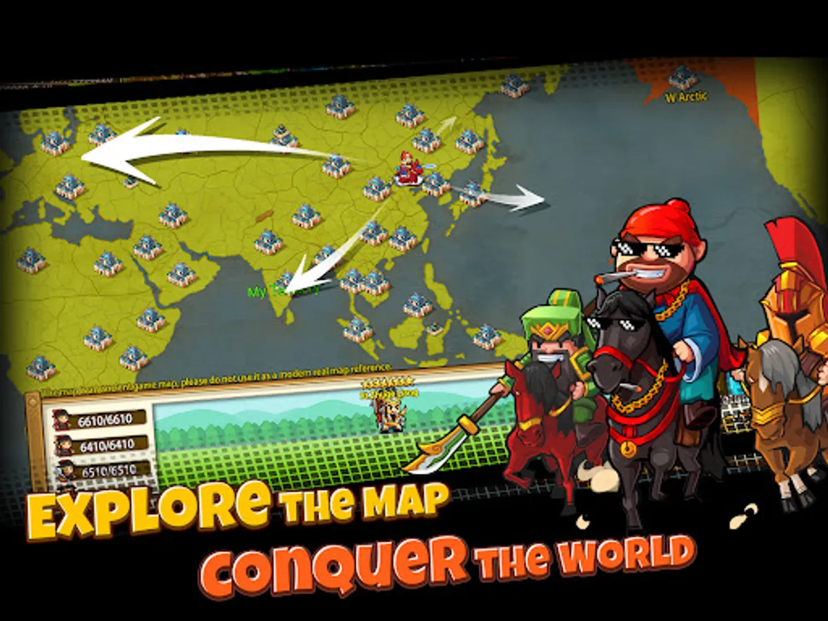 World Conquest: You can also be a Military Commander, aspiring to conquer the world. From now on, raise your reputation, recruit famous generals&soldiers from various region and countries, then start your journey! From the Far East Goryeo country, to the three Continents of Europe, Asia and Africa, to the American continent across the ocean, and finally reach unparalleled success, building your own unique everlasting Empire!
