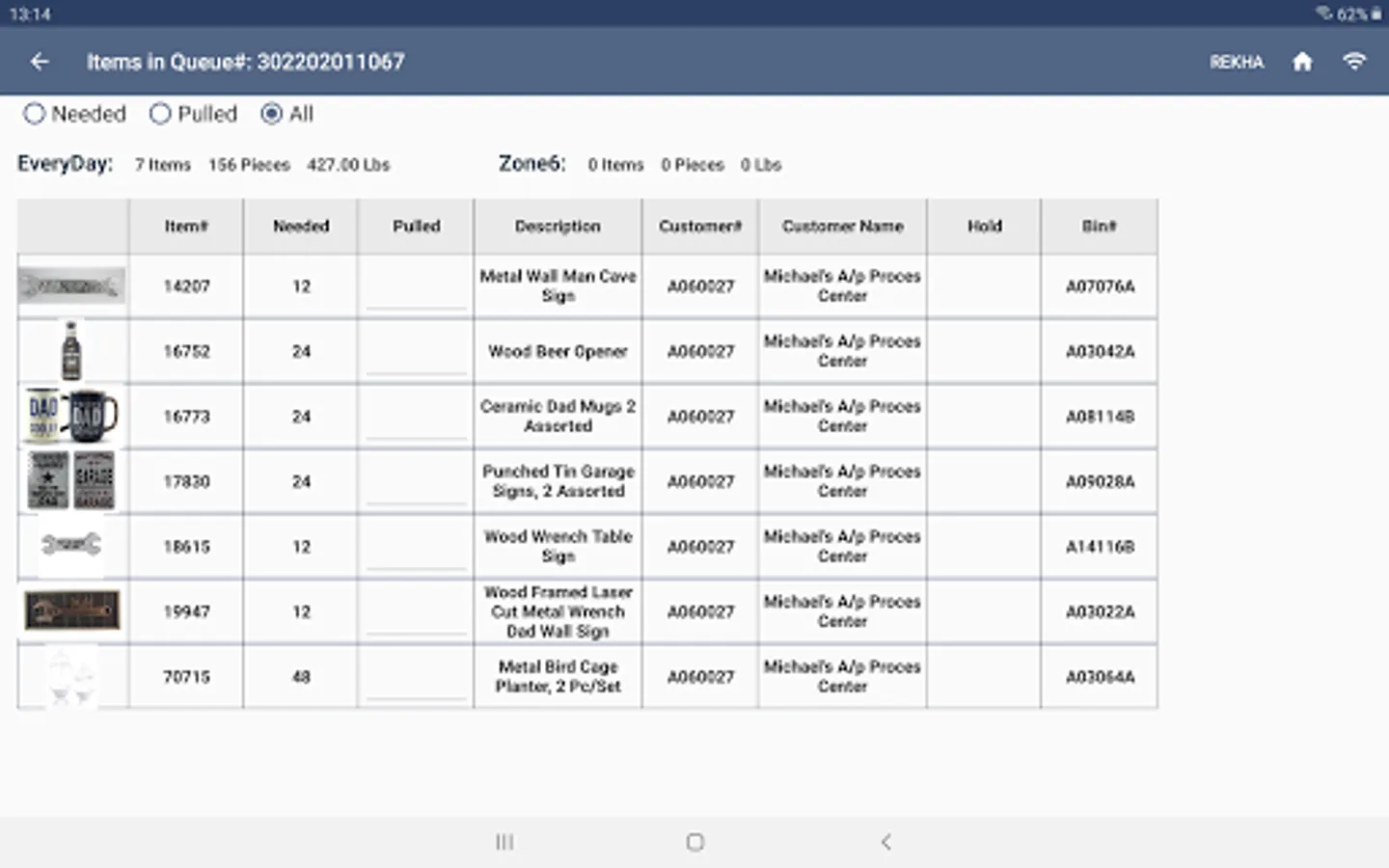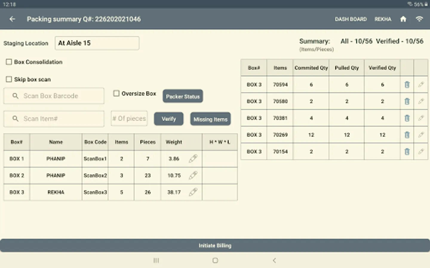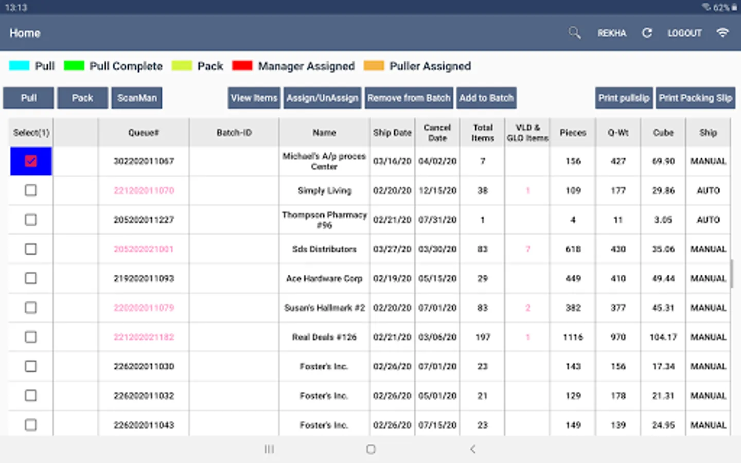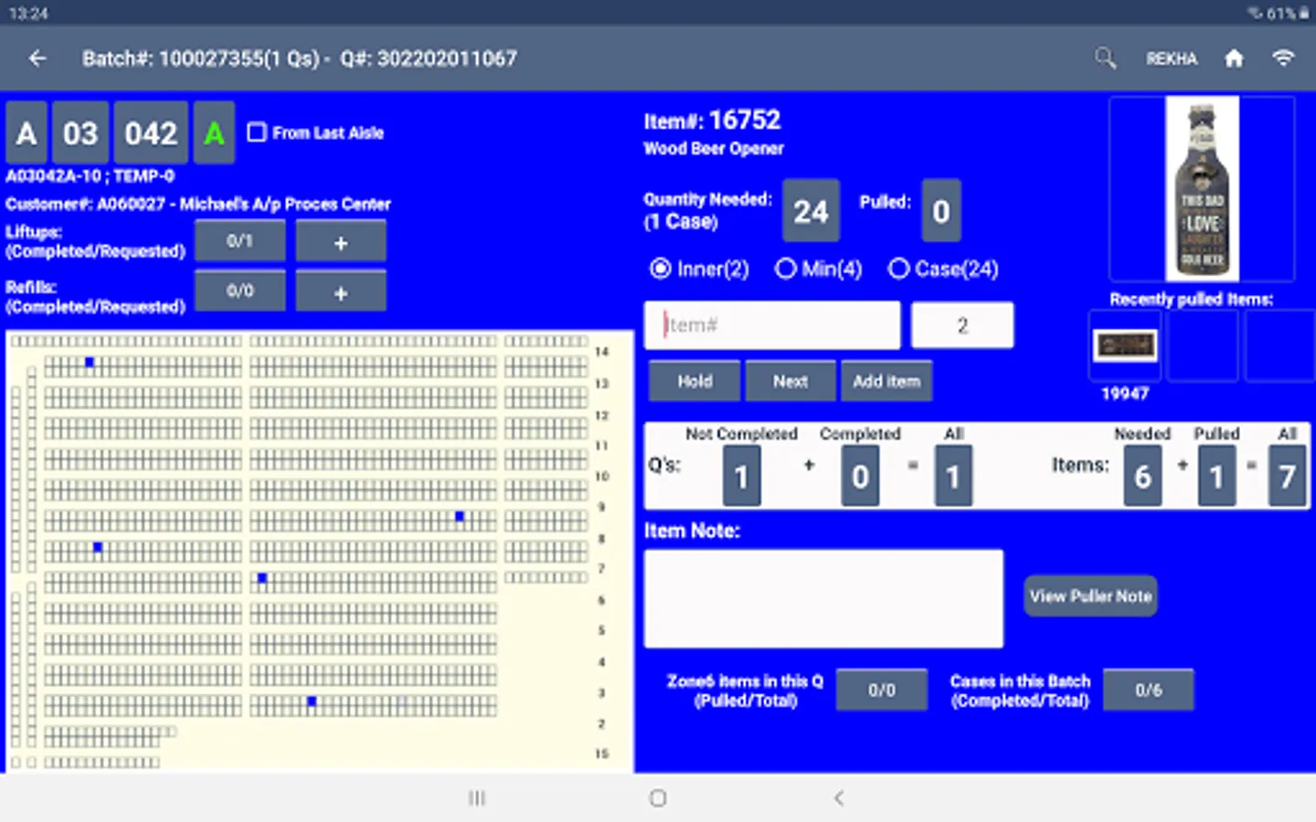 This app is created for warehouse pullers that allow them to pull and pack the items for an order. It gives information about the orders to be pulled, the list of items