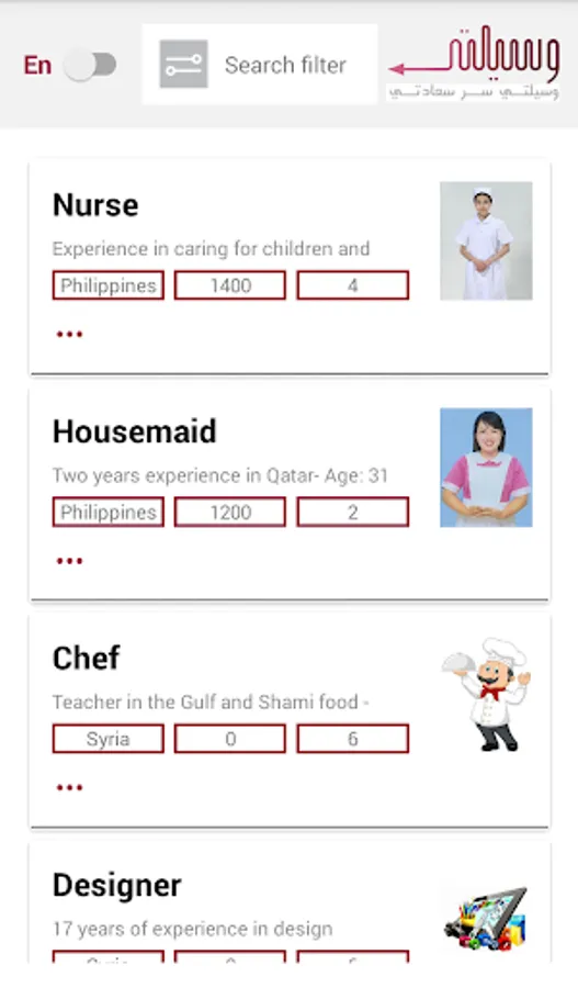 The program is free for all users either via mobile devices or by computer where it is easy to process, search for employment services or professional or real estate or cars and others of interests to the community in general where it facilitates the process