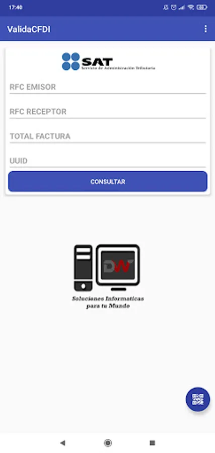 Check validity of your bills by scanning the QR code or data capturing CFDI is intended to verify, this app works via a Web Services Official published by the SAT to get the current status of your CFDI.