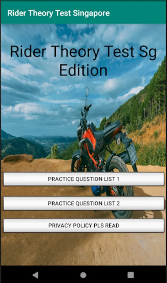 With this Rider Theory Test Singapore app, it will be your handy guide for rider theory test as well as a last minute theory test practice right before you take your Rider Theory Test Singapore. Can be used as reference to basic theory test as well, but best for motorcycles, rider theory test Singapore.