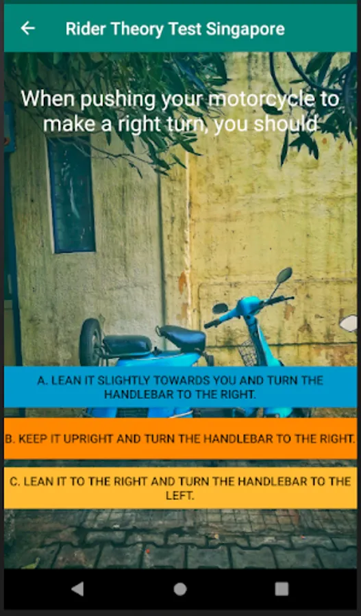 This app is created with the intention to be related to Singapore edition of rider theory.