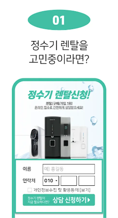 Install the water purifier rental app right now and easily receive consultation through online registration!