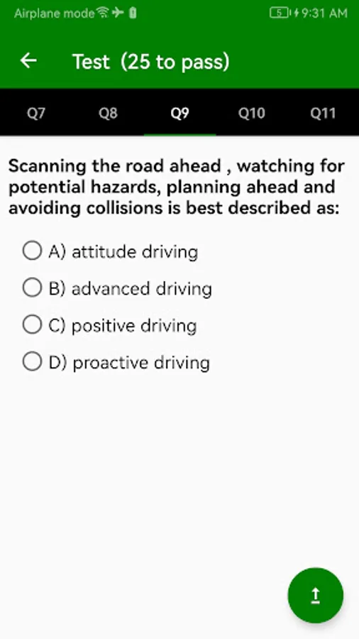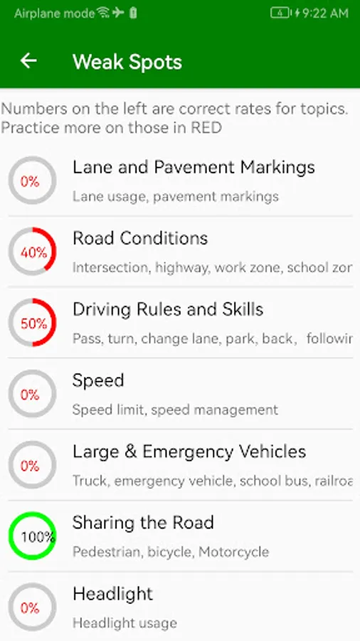 In practice mode, you can choose to practice in repeat mode or shuffle mode. Also you can practice by topics, e.g. highway, laws, safety.