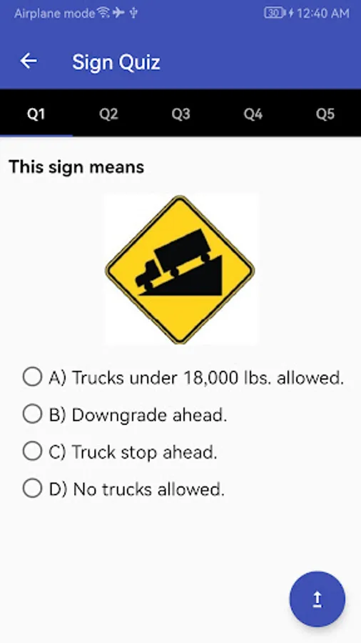 Practice with hundreds of questions in our APP, including traffic signs and driving knowledge.We encourage you practice as many times as you can.