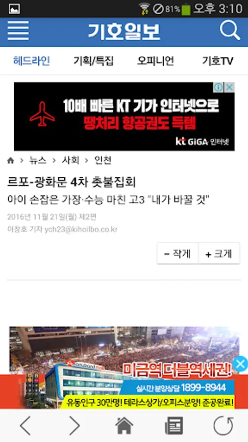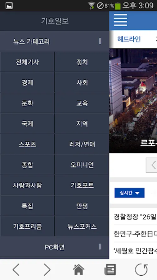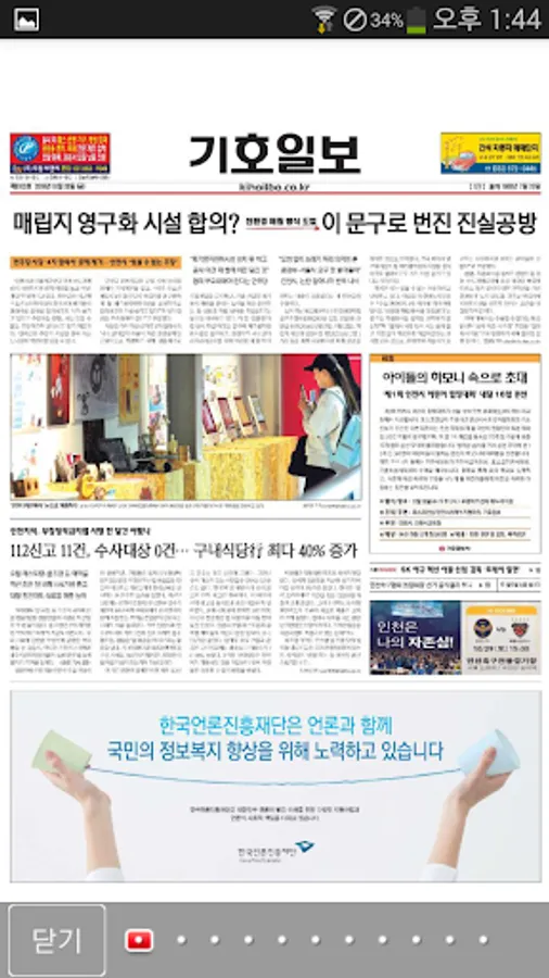 Sign Android app Daily News, as well as Incheon, Gyeonggi province, such as politics, economy, society, will deliver a variety of real-time news.
