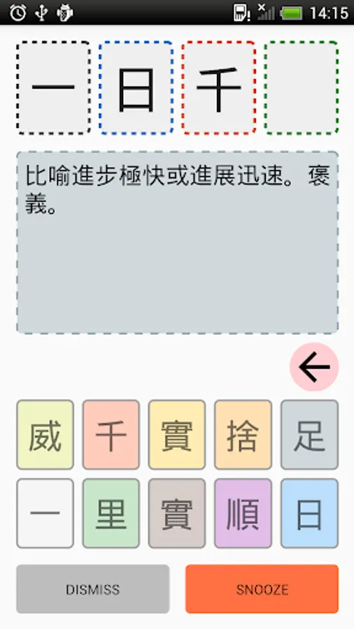 You can just press the dismiss button to close the alarm, or enjoy the time to resolve idiom puzzle.