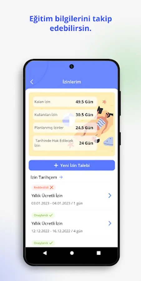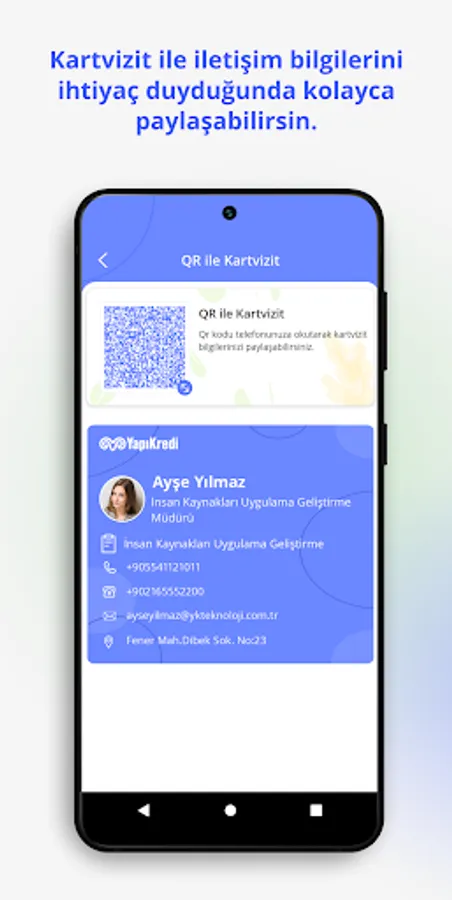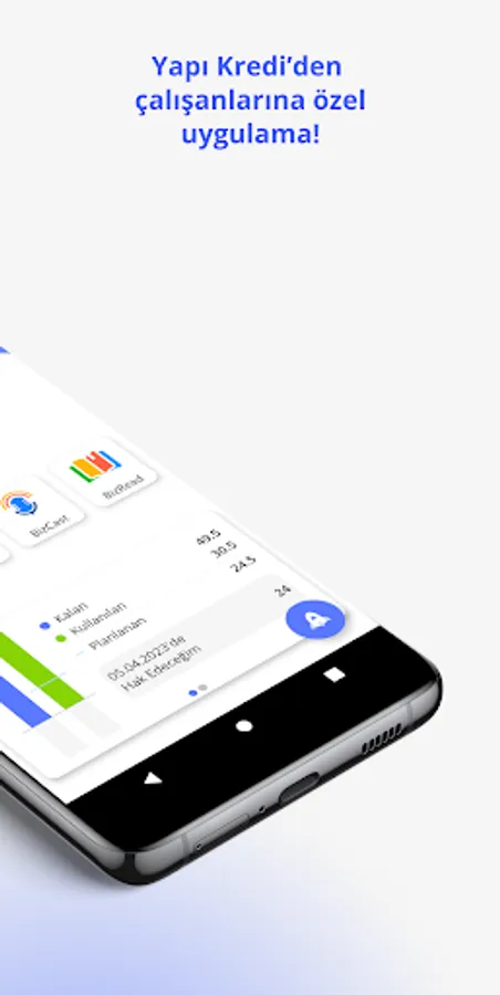 By using the dynamic application, Yapı Kredi Bank employees can enter their leave entries, upload their health reports, view their payrolls, access the contact information of their colleagues in different teams through the person search function, share their QR business cards with their customers and colleagues they are in contact with, and follow their compulsory education. In addition, our Head Office employees can access the daily food menu, and our managers can manage the leave request processes made by their employees. The dynamic mobile application also provides you, Yapı Kredi Bank employees, with different content through social media content platforms such as BizTube, BizCast, and BizRead, while allowing you to purchase tickets to events through the BizClub platform and to use discounted services through contracted institutions.